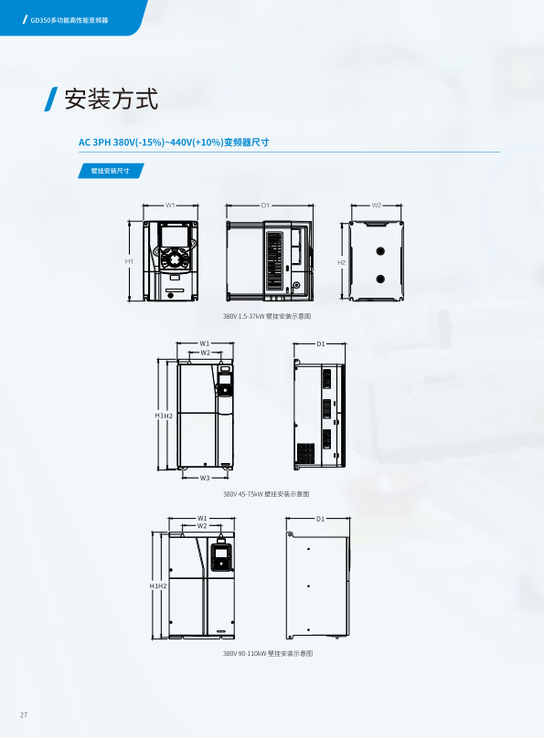 大功率变频器安装时,需确保良好的通风散热条件,并可能需要选配输入/输出电抗器、滤波器等外围配件以优化性能。