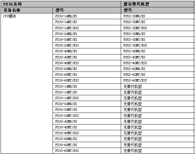 1.2 :CPU模块的建议替代机型●从FX3G→FX5S时的建议替代机型一览(CPU模块)