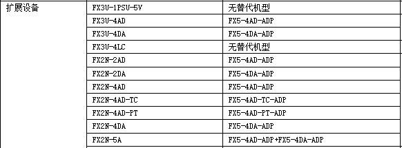 ●将CPU模块从FX3G→FX5S时,需替换的扩展设备一览