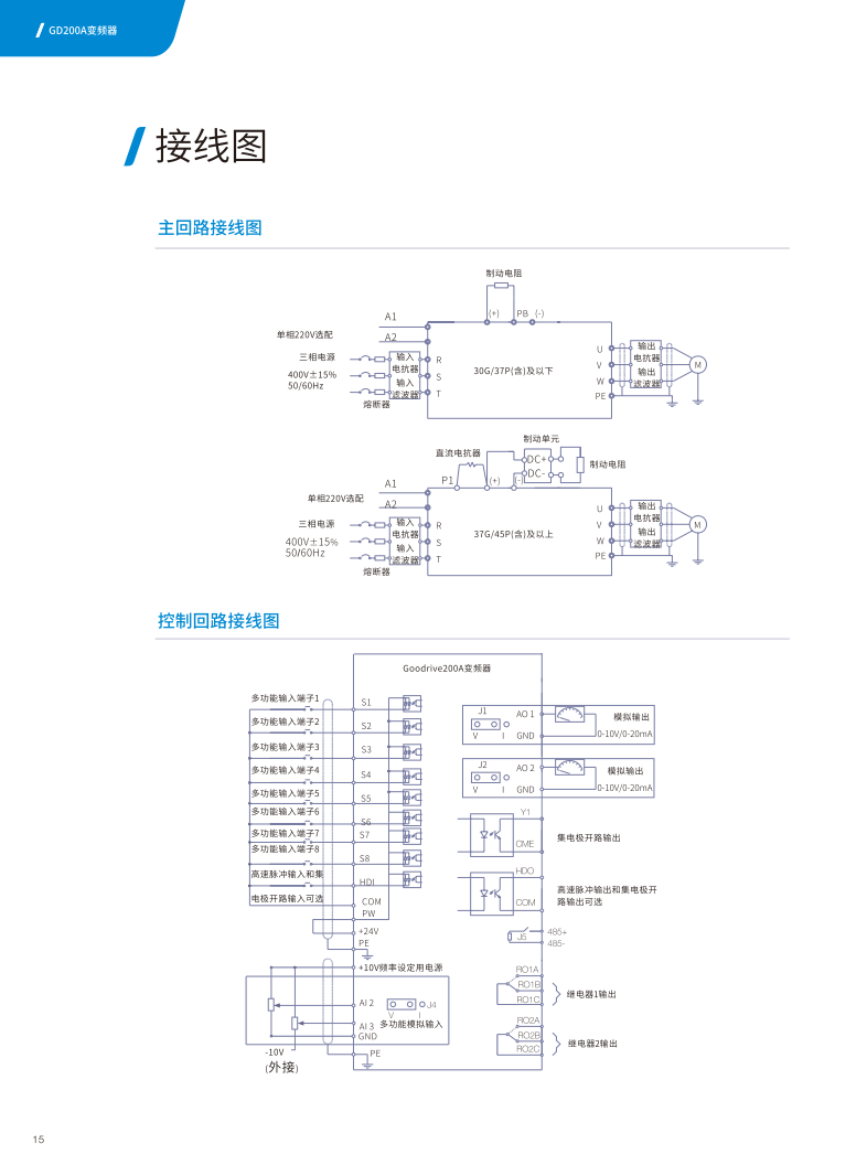 制动电阻 : 用于快速停车或大惯量负载制动,需要根据实际工况另行选配。