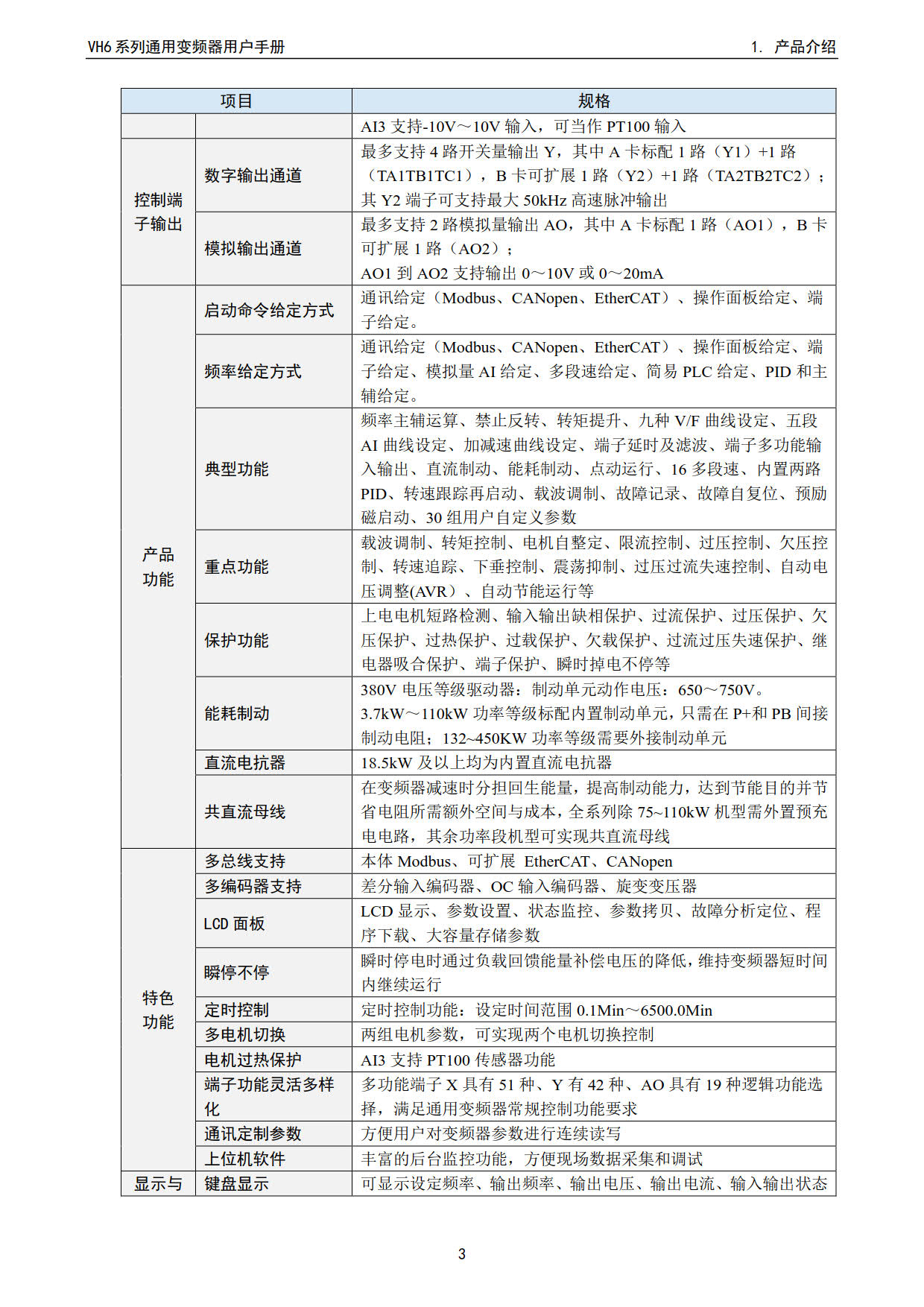 载波调制、转矩控制、电机自整定、限流控制、过压控制、欠压控制、转速追踪、下垂控制、震荡抑制、过压过流失速控制、自动电压调整(AVR)、自动节能运行等