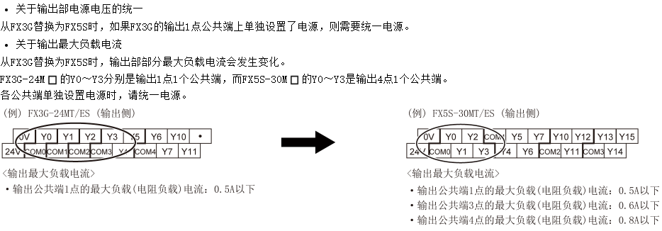2.2 FX3G和FX5S输出部驱动电源的差异点及注意事项