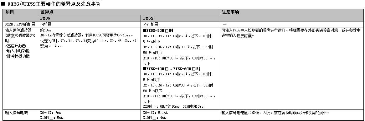 1.3:FX3G和FX5S的比较及替换时的注意事项