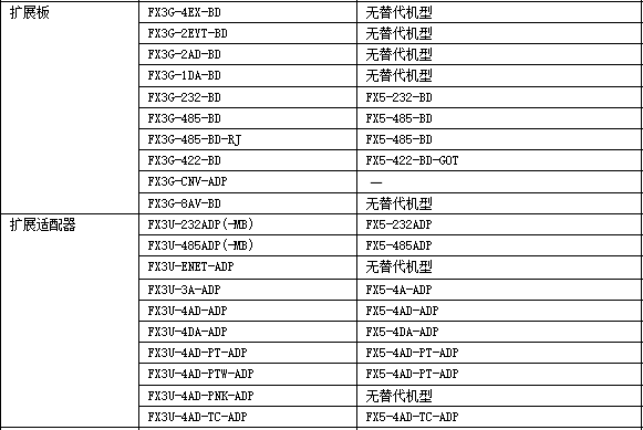 ●将CPU模块从FX3G→FX5S时,需替换的扩展设备一览